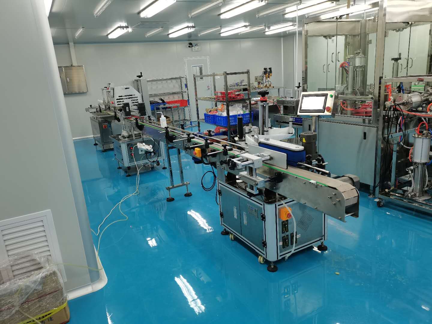 灌裝機,旋蓋機,貼標機,已完成生產(chǎn)車(chē)間安裝調試
