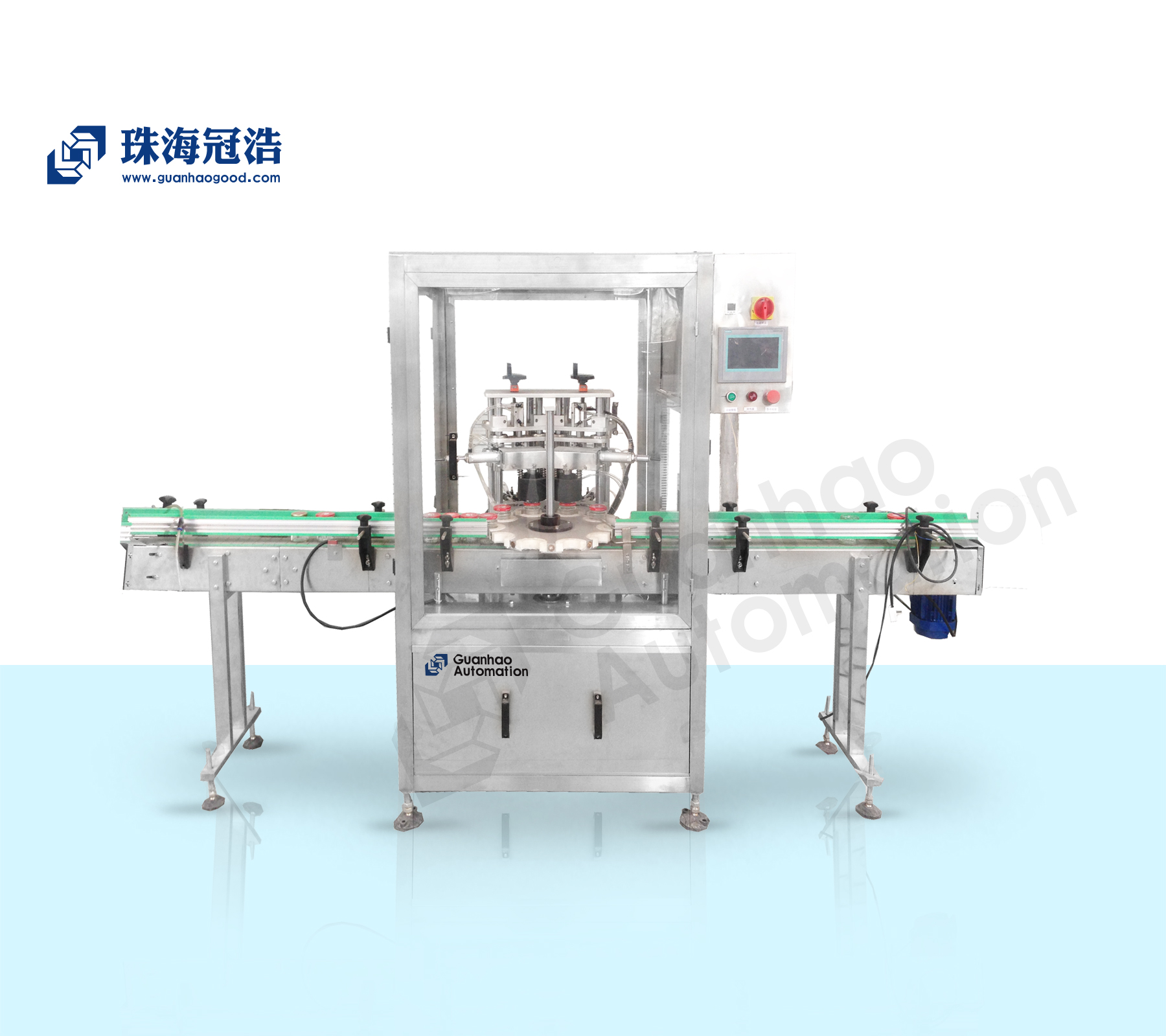 珠海冠浩機械全自動(dòng)雙頭抽真空旋蓋機,是我司引進(jìn)國外原理和技術(shù),結合自身多年的生產(chǎn)經(jīng)驗研制而成,該機集自動(dòng)理蓋、自動(dòng)上蓋、自動(dòng)抽真空旋蓋于一體,生產(chǎn)速度快,效率高,運行穩定可靠。該機適用性強可選用圓形、方形、各種異形瓶等,更換不同規格的瓶子、蓋子只需簡(jiǎn)單調整,操作方便,是一款理想的三四旋蓋玻璃瓶自動(dòng)旋蓋設備。