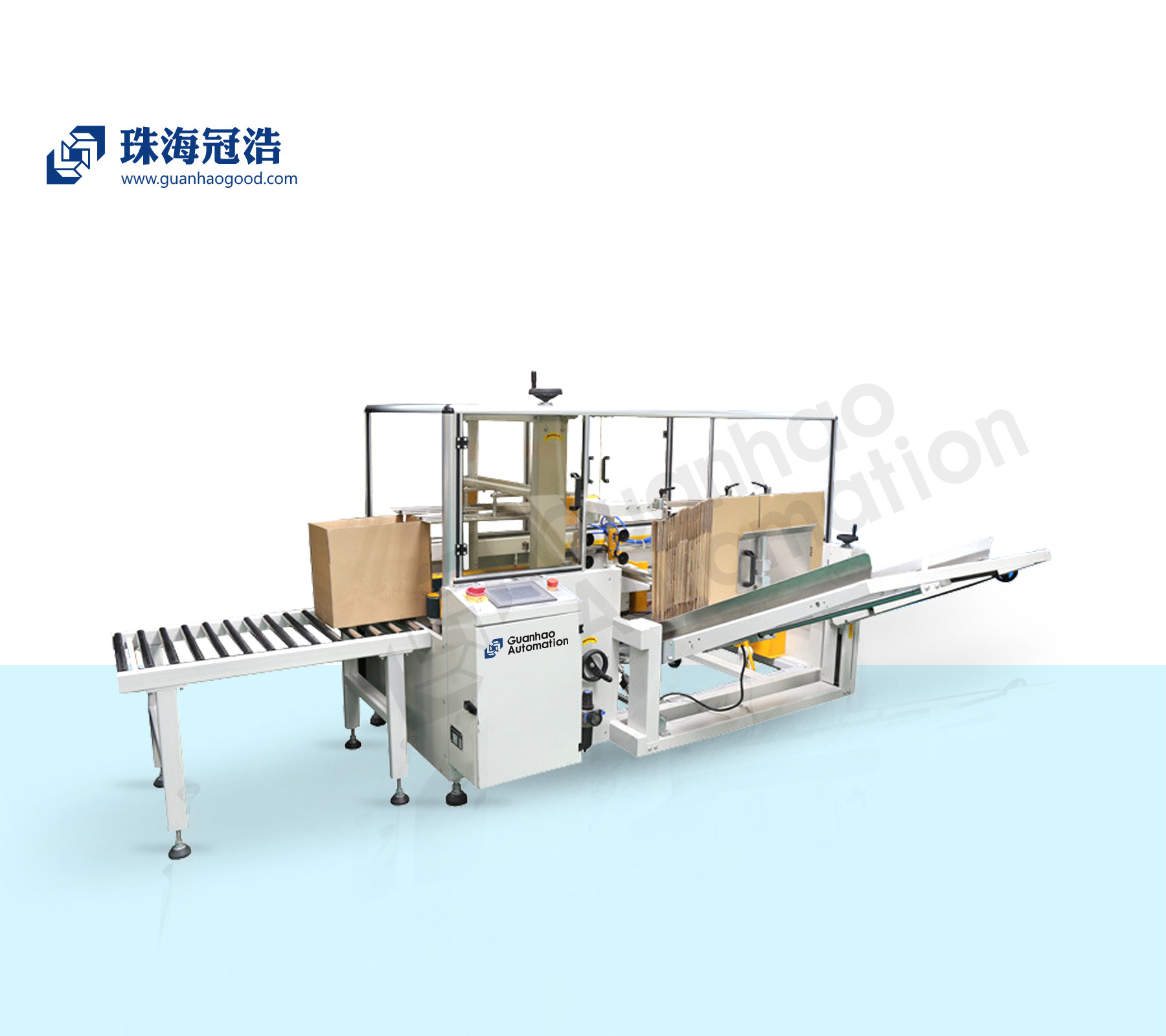 珠海市冠浩機械設備有限公司-調節紙箱大小,適合同種規格紙箱,同時(shí)段封箱操作簡(jiǎn)單、使用方便、容易調整、封箱速度快、效率高、堅固耐用,可單機使用,也可與自動(dòng)化后到包裝流水線(xiàn)配套使用。