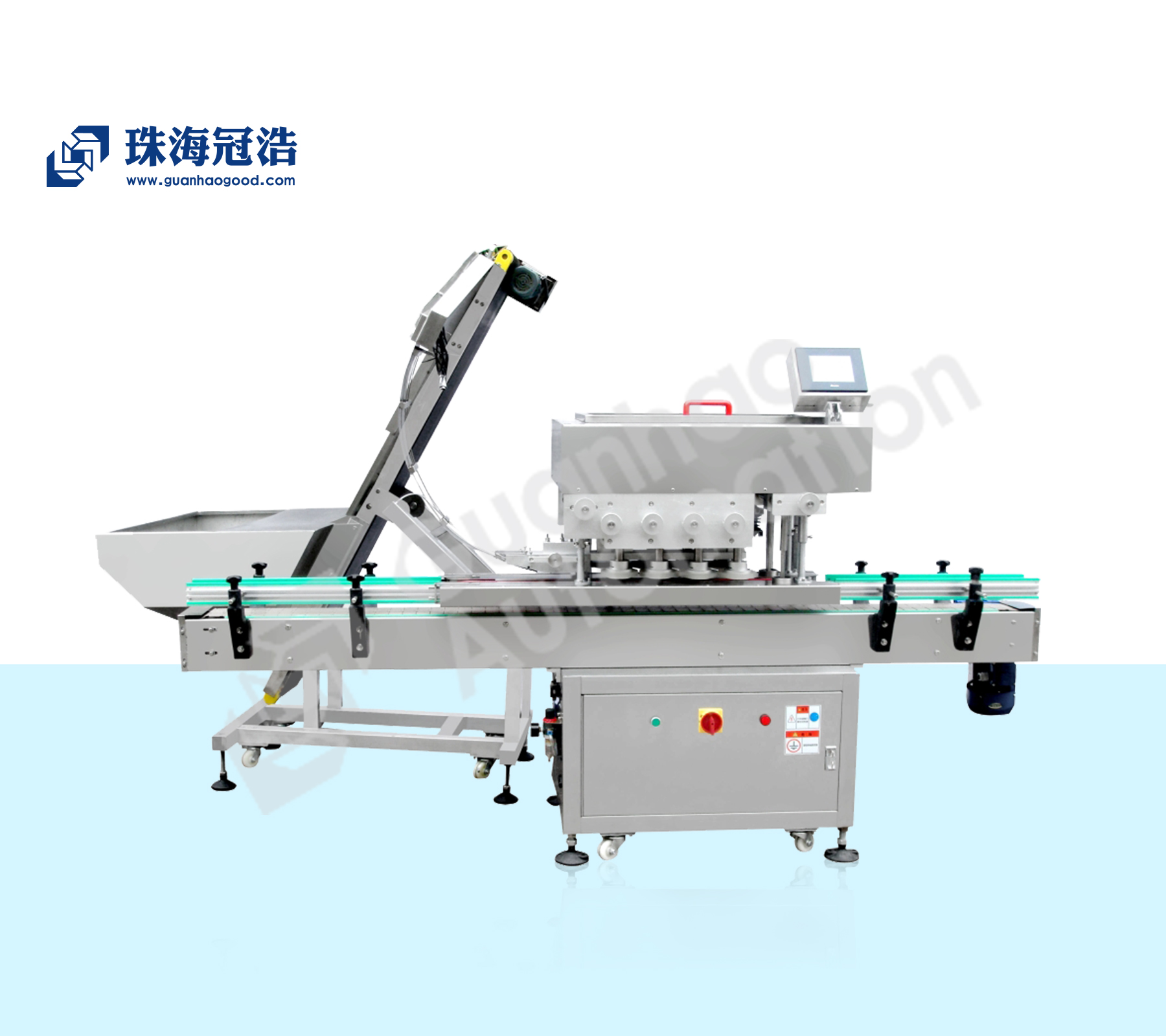 應用于各種食品、藥品、化工產(chǎn)品、電子產(chǎn)品、瓶裝產(chǎn)品理蓋、壓蓋、旋蓋使用。主要適用于不同材質(zhì)的規格及不同規格的蓋子、旋蓋、擰蓋、壓蓋。適用螺旋蓋、防盜蓋、壓入蓋等。備有恒扭矩旋蓋頭,壓力可方便調整。結構緊湊、合理,能方便與其它設備聯(lián)動(dòng)成線(xiàn)。