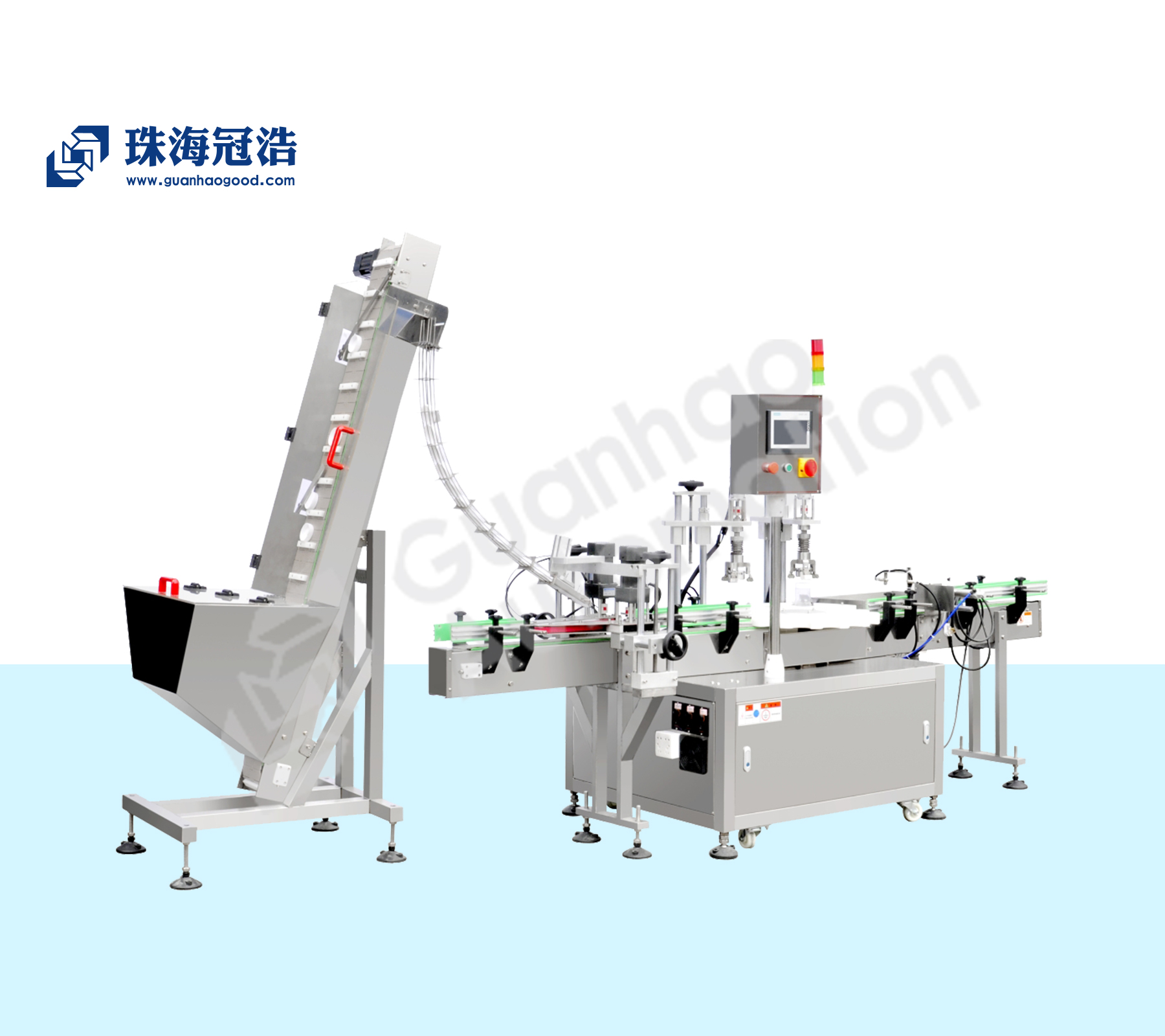 珠海冠浩機械設備有限公司該旋蓋機用于各種食品、藥品、化工產(chǎn)品、電子產(chǎn)品、瓶裝產(chǎn)品理蓋、壓蓋、旋蓋使用。主要適用于不同材質(zhì)的規格及不同規格的蓋子、旋蓋、擰蓋、壓蓋。適用螺旋蓋、防盜蓋、壓蓋等。備有恒扭矩旋蓋頭,壓力可方便調整。結構緊湊、有效保護瓶蓋不被刮花、合理,方便與其它生產(chǎn)線(xiàn)聯(lián)線(xiàn)一起使用。